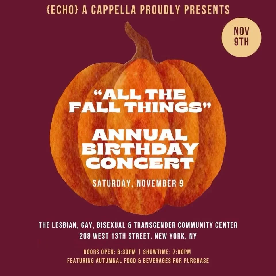 Welcome to {Echo}! We are a semi-professional a cappella group in New York City that is comprised of singers from different ages, backgrounds, and walks of life. Echo is comprised of a group of talented vocalists who sing captivating arrangements with seamless blends. From pop hits to soulful ballads, and dynamic small group numbers, Echo delivers music that resonates with all types of audiences.
